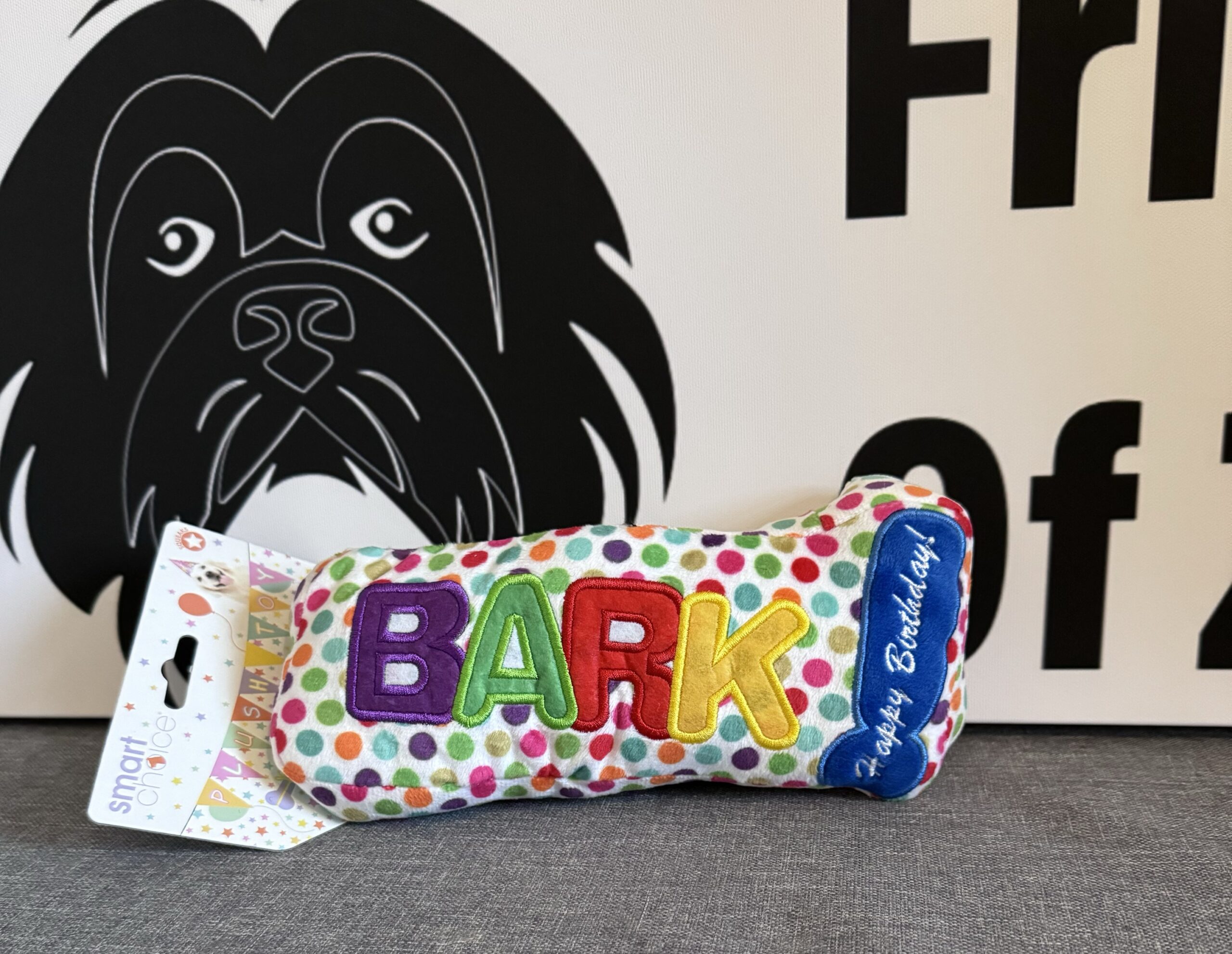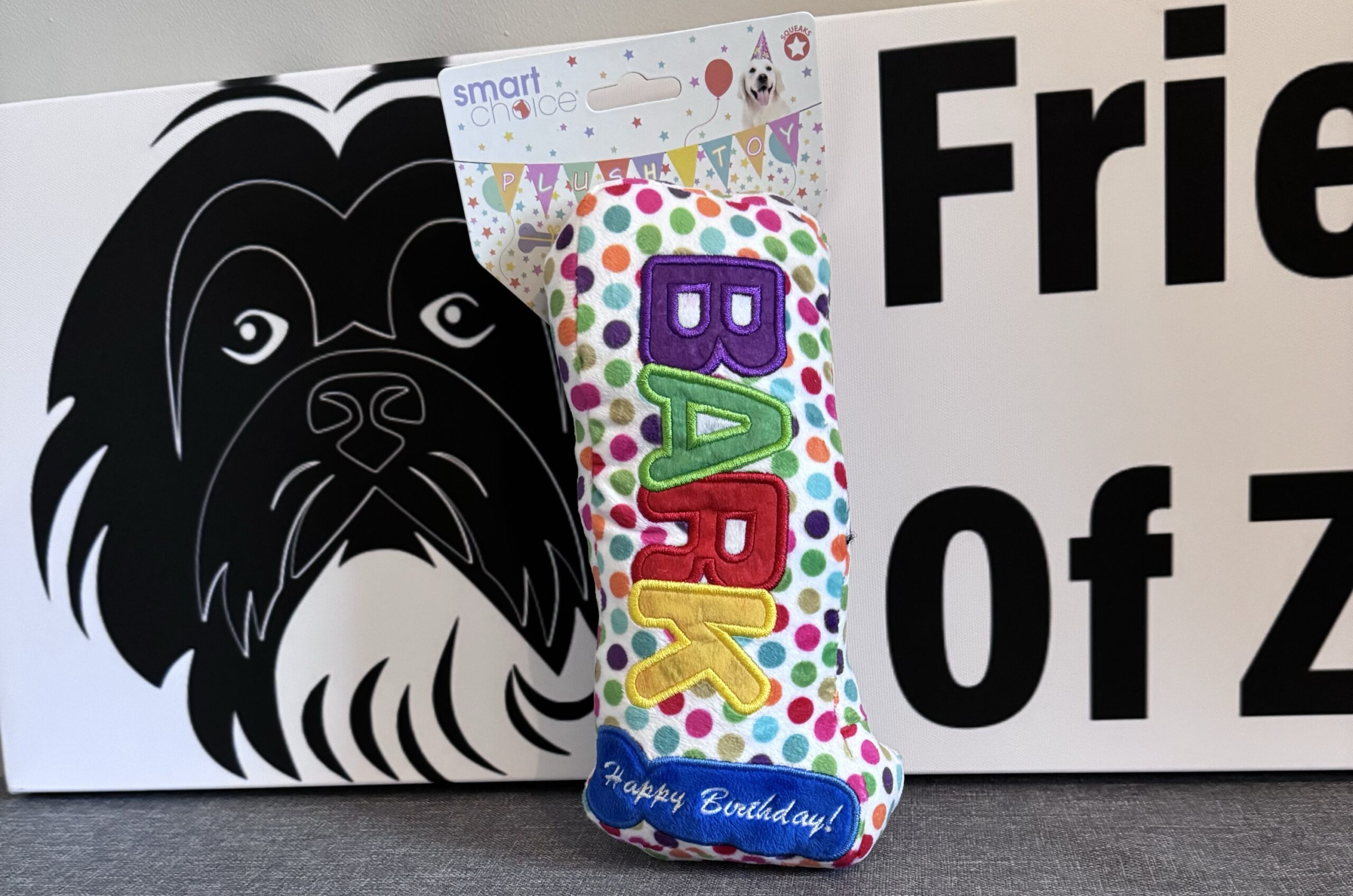 A cool looking dog bone that squeaks. Say happy birthday with a bone they can play with 🐶🐾